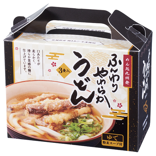 長崎県産の小麦を使用し柔らかい麺に仕上げ、長崎県産の焼きあごだしと組み合わせた今話題の柔らかいうどんです。