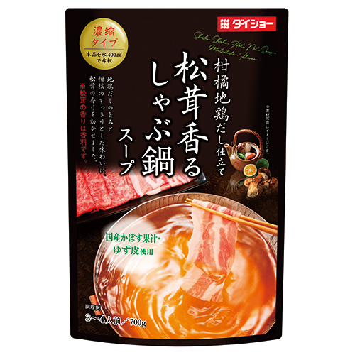 松茸の香りを効かせたつけだれいらずの贅沢なしゃぶしゃぶ用スープです。
