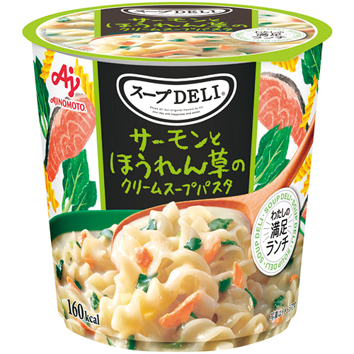 サーモンと、彩りの良いほうれん草を加えたクリーム仕立てのスープパスタです。これ一杯で満足ランチが楽しめます。