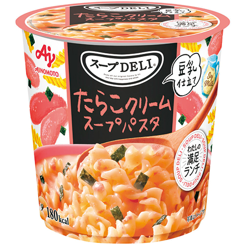 豆乳のまろやかな味わいが特徴の、たらこ味のクリームスープパスタです。これ一杯で満足ランチが楽しめます。