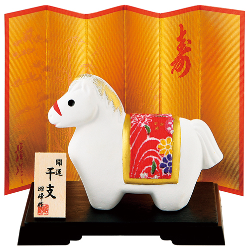 艶やかな金屏風に2026年干支「午」の置物がセットされた何とも縁起のいい商品です。