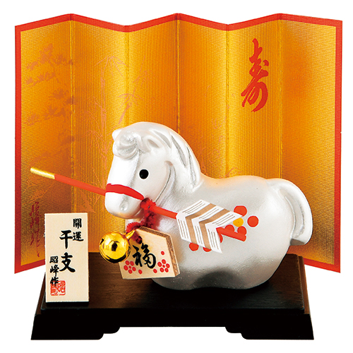 干支「午」が縁起物の破魔矢をくわえた開運・招福を祈願した商品です。