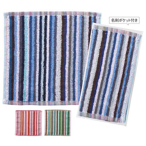 タオルを織る際に余った糸を有効活用することで環境にやさしいエコなタオルです。色合いもカラフルで虹の様な仕上がりです。