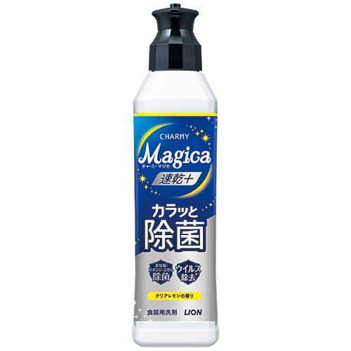 油汚れがサラサラ落ちるナノ洗浄が特徴のマジカ。速乾+は水切れがよく食器が速く乾きます。除菌もでき清潔に洗い上がる台所用洗剤です。