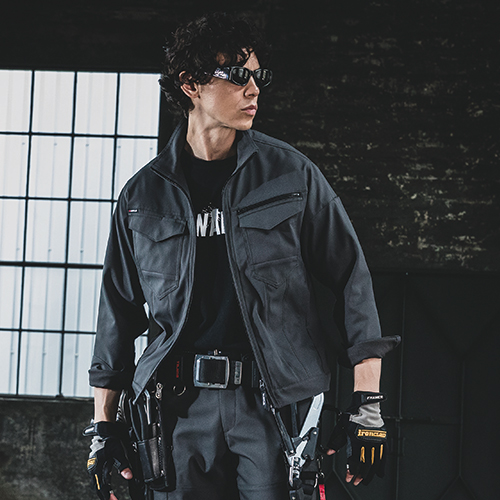 スッキリとしたテーパードシルエットがシャープなユニフォームスタイルを演出。