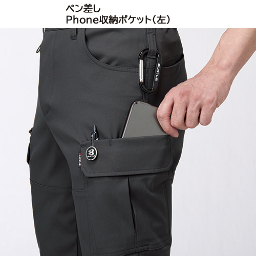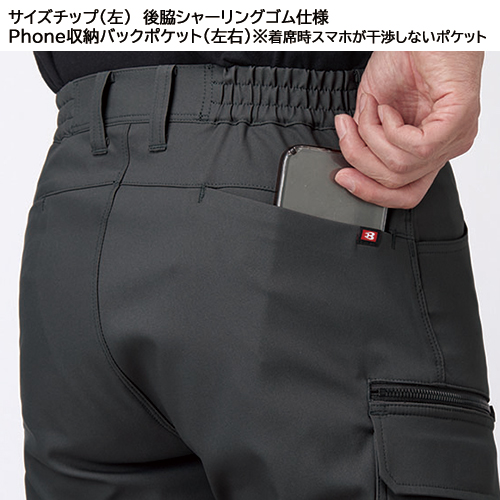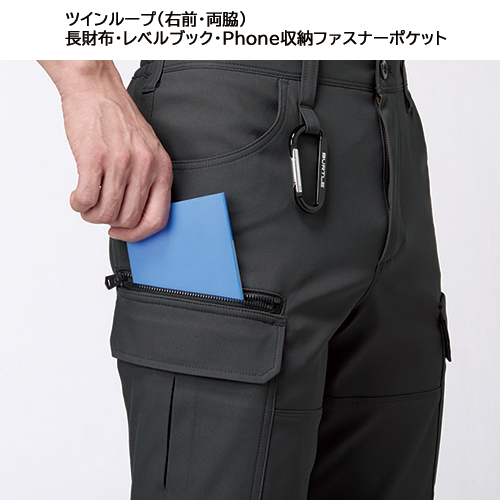 サービス系ユニフォームにフィットする全5カラーのスリムカーゴパンツ。