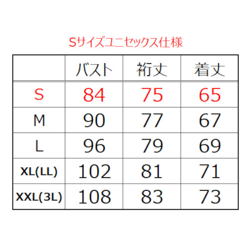 Sサイズはユニセックス対応シルエットを採用。