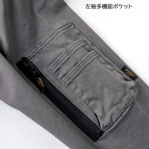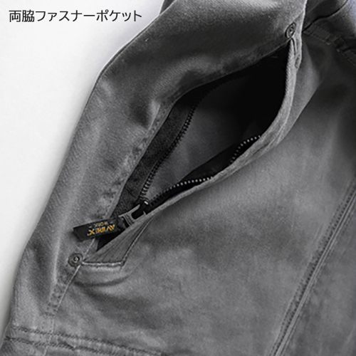 左袖の多機能ポケットや両脇のファスナーポケットなど実用的な収納を備え作業時にも街着としても活躍。