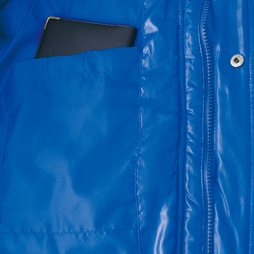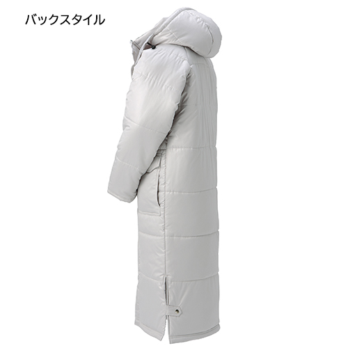 撥水性の高い表地に保温性の高い中綿を使用し、ハンドウォーマー付きのポケットや動きやすいスリット等、スリムなシルエットと機能性を両立させたベンチコートです。