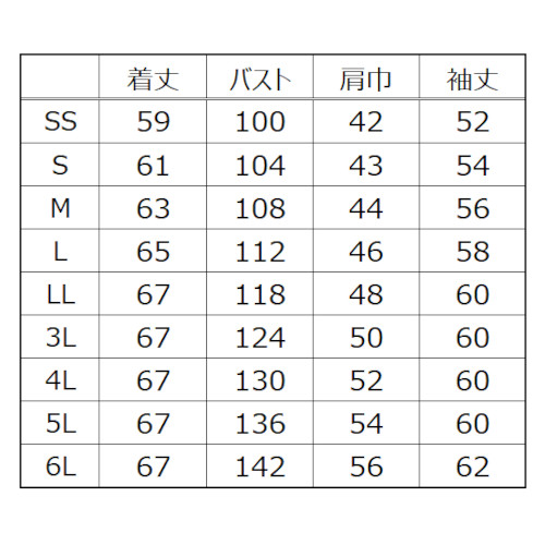 | 白 ブルー グリーン ピンク ネイビー | SS S M L LL 3L 4L 5L 6L | 1~ | ¥5,478 |