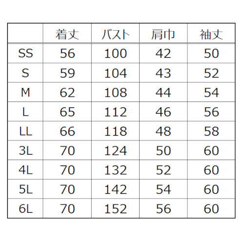 | 白 | SS S M L LL 3L 4L 5L 6L | 1~ | ¥4,422 |