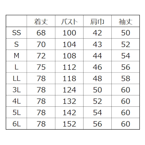 | 白 | SS S M L LL 3L 4L 5L 6L | 1~ | ¥4,653 |