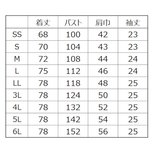 | 白 | SS S M L LL 3L 4L 5L 6L | 1~ | ¥4,422 |
