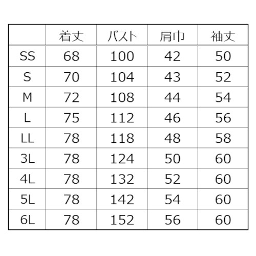 | 白 | SS S M L LL 3L 4L 5L 6L | 1~ | ¥4,807 |