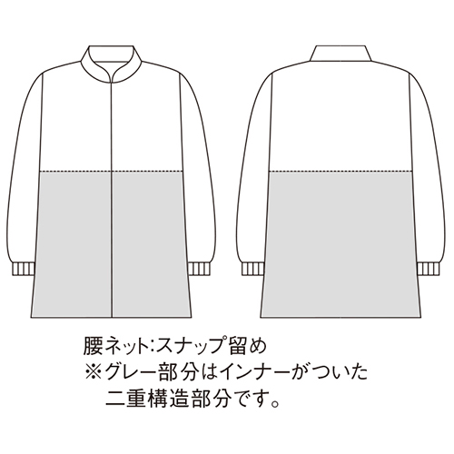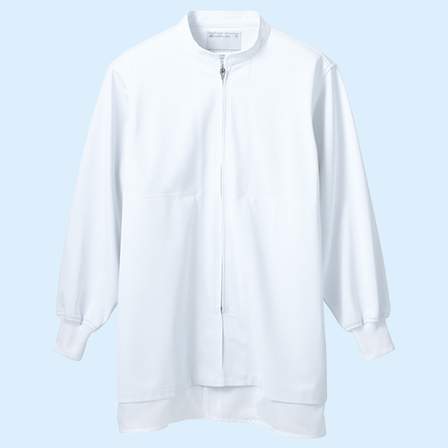 抗菌・透け防止・制電機能、作業性が高まるアームシャーリング機能もついた、住商モンブランの工場白衣ブルゾン。制電裏面トリコット素材を使い低温の作業場に最適です。
