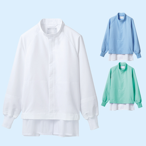 抗菌・透け防止・吸汗速乾・制電機能を付与した高機能素材を使ったジャンパータイプのの食品工場向け白衣。