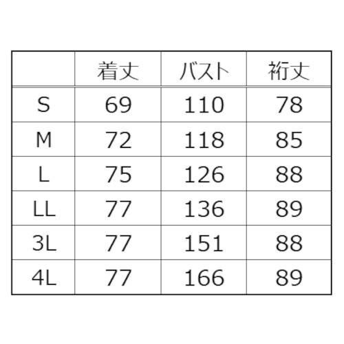 | 白 ブルー グリーン | S M L LL 3L 4L | 1~ | ¥5,115 |