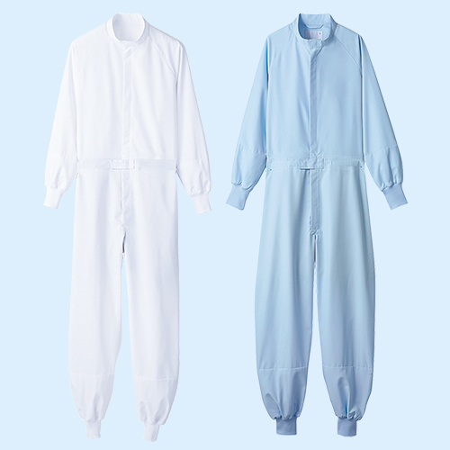 抗菌・透け防止・吸汗速乾・制電機能を付与、グリーン購入法対象商品、薄手の高機能素材で暑い職場に最適な着心地。住商モンブランの工場白衣オーバーオール。