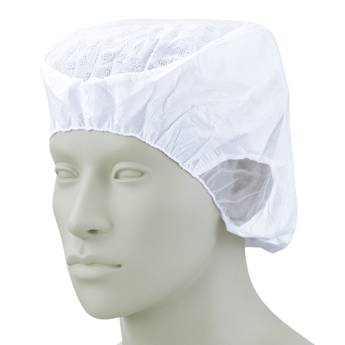 住商モンブランの工場白衣向けつばなしタイプのエレクトレット帽、帯電化パワーで毛髪・フケ・雑菌を強力キャッチ