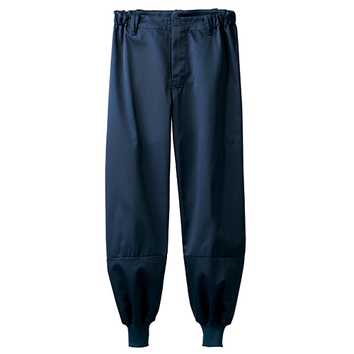 食品製造ラインの機械メンテナンス業務のHACCP対策向けに考えられた住商モンブランのパンツ。しっかり丈夫なつくりであることと、汚れが目立ちにくい紺色。動きやすいうえに綿混紡なので熱源に触れる作業でも溶けにくく安心です。ハードな職場環境に対応するハリとコシのある帯電防止素材を採用しチリやホコリなどの付着を軽減し放電ショックを防ぎます。また毛玉や引きつれのしにくい抗ピリング・抗スナッグ性を持つ素材でj表面を滑らかに保ち異物混入のリスクを防ぐ工場白衣としての機能もしっかり兼ね備えています。