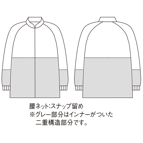 ●内ポケットつき●袖口ネット●セミオートマチックコイルファスナー仕様●袖口フライス仕様●インナーカバーつき(腰ネットスナップ留め仕様)