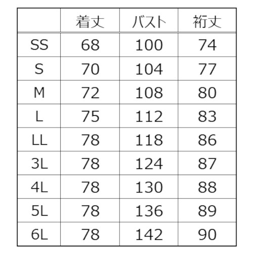 | 白 ブルー グリーン | SS S M L LL 3L 4L 5L 6L | 1~ | ¥3,740 |
