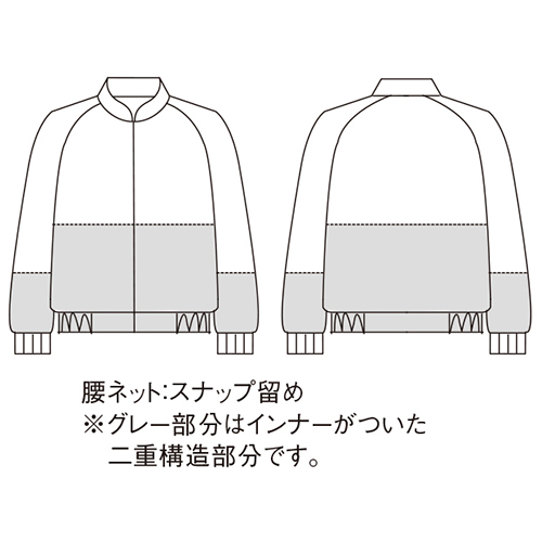 ●内ポケットつき●袖口ネット●セミオートマチックコイルファスナー仕様●袖口フライス仕様●インナーカバーつき(腰ネットスナップ留め仕様)