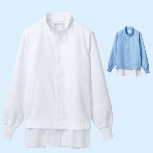 優れた形態安定のニット素材に汚れ落ちに優れた防汚加工をした高機能素材の住商モンブランの工場白衣ジャンパー