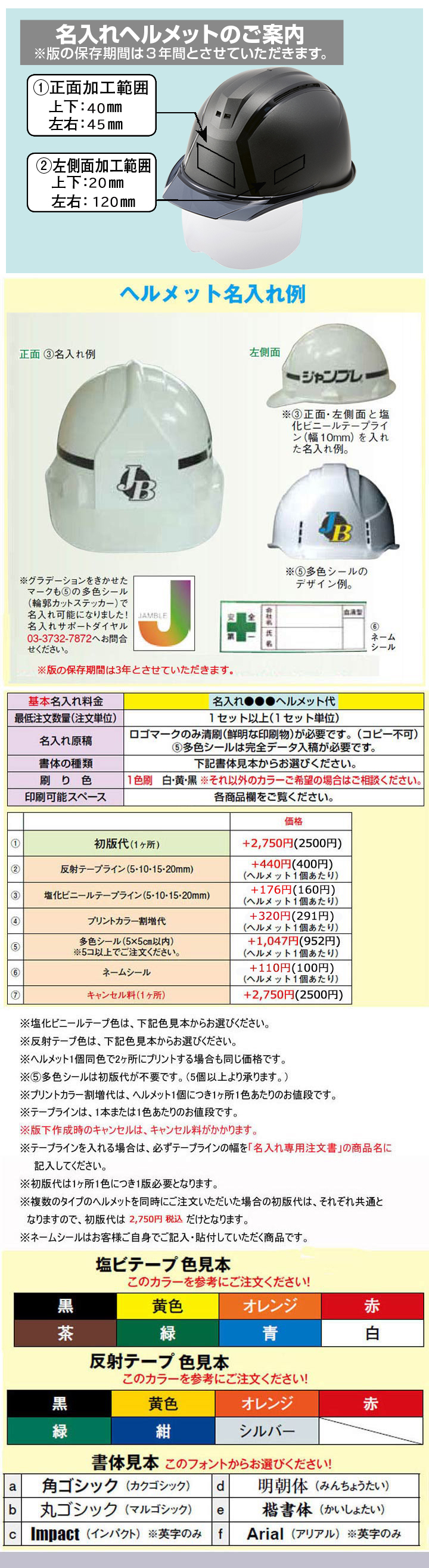 当サイトの名入れヘルメット商品代金には「名入れ加工代」が最初から含まれています。2度目以降のご注文時は名入れヘルメット代だけでお求め頂けます。