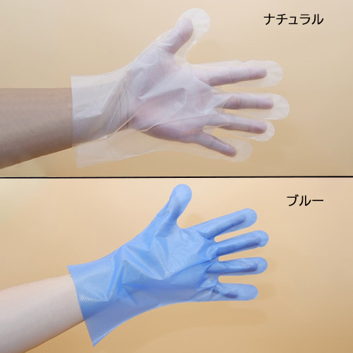 しっかりした厚みがあり、手を入れた感触がサラっとした内側エンボス加工のポリエチレン手袋。