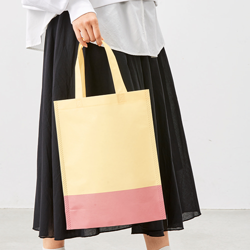 環境にやさしい再生PET生地のトートバッグ。A4サイズが収納可能で展示会での配布に便利。底マチ有りなので見た目以上の収納力があります。
