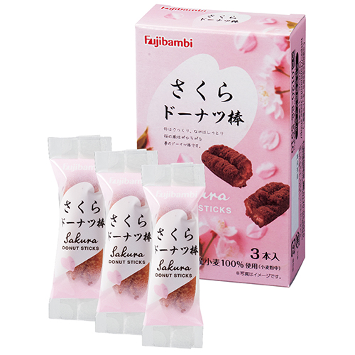 国産小麦粉を100%使用した春限定のドーナツ棒。桜の華やかな風味が広がります。さくらをデザインしたパッケージもポイントです。