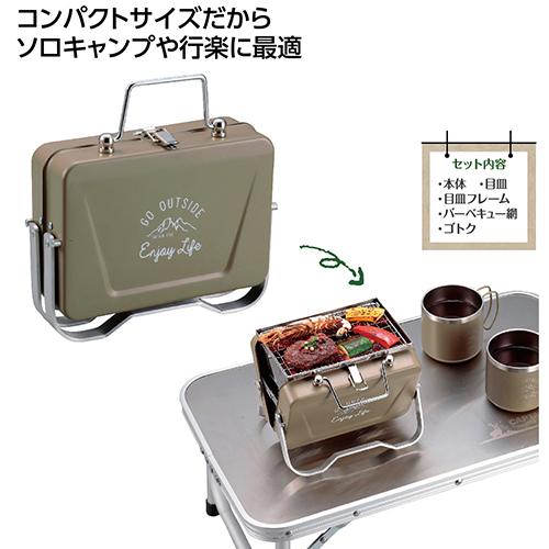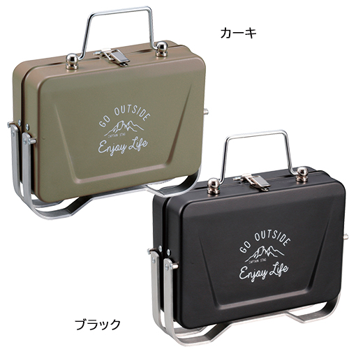 お花見や行楽に最適な卓上グリル。トランク型に収納できるので持ち運びにも便利。