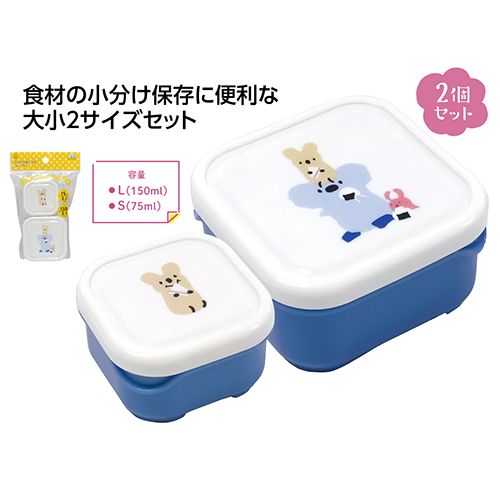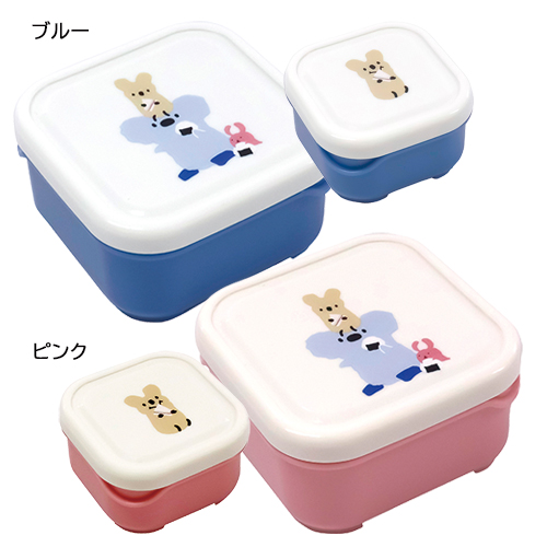 かわいいキャラクターがプリントされたスクエアボックスの大小2個セット。サラダやフルーツが小分けできる便利なお弁当箱。