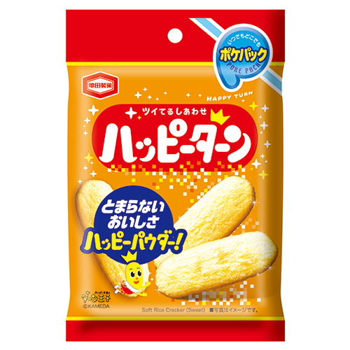 食べきりサイズがうれしい亀田のポケパック。甘じょっハッピーパウダーでとまらない美味しさ。誰もが大好きなハッピーターンです。