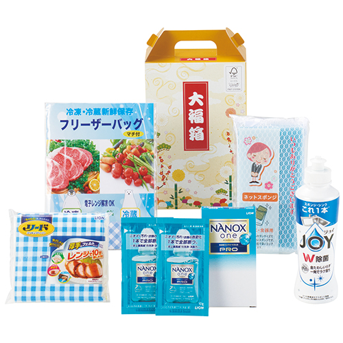 うれしい生活消耗品のお得な詰め合わせギフト。ご家庭で便利に使えるものだけを選びました。店頭で目を引く縁起の良いデザインの化粧箱入り。