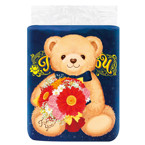 テディベアデザインの高級感のあるパッケージ。リバーシブルデザインでイベントも華やぎます。うれしいダブルのトイレットロール4個セット。