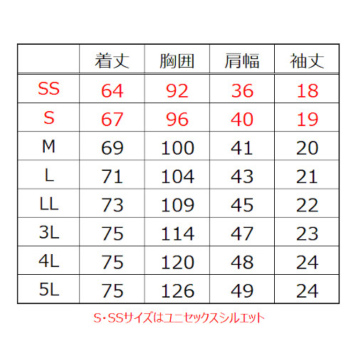 | レッド ネイビー ブラック ホワイト シルバーグレー ロイヤルブルー パッションピンク チャコール | SS S M L LL 3L 4L 5L | 1~ | ¥1,265 |
