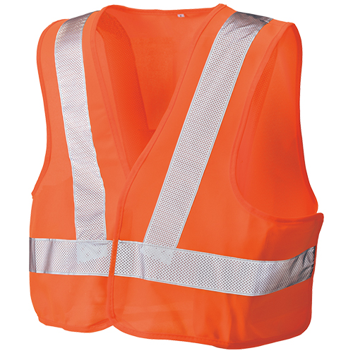 高視認性安全服の規格をクリア(JIS8127適合)した反射材付きフラッシュベスト。