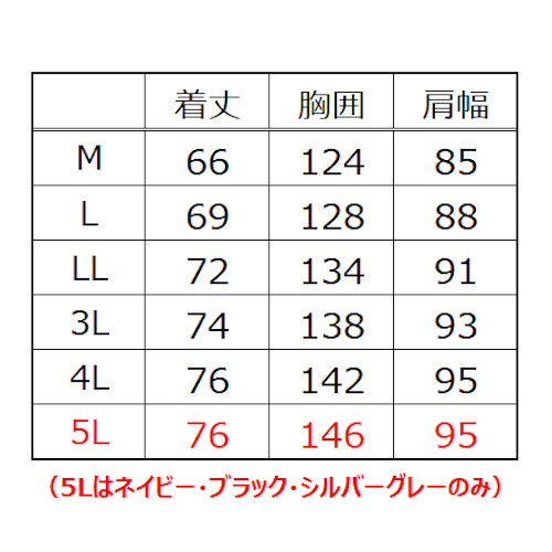 ※5Lサイズはネイビー・ブラック・シルバーグレーのみ