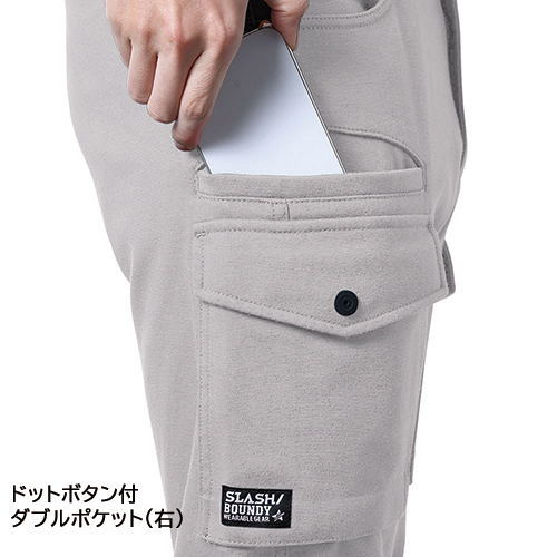縦横140%超ストレッチするスウェットライクな柔らかい風合いのCVC布帛を活かし、スマートなシルエットながら楽な着用感と動きやすさを兼備させた新感覚ワークウェア。