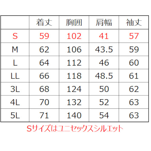 Sサイズはユニセックスシルエットになります。