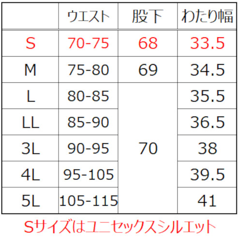 Sサイズはユニセックスシルエットになります。