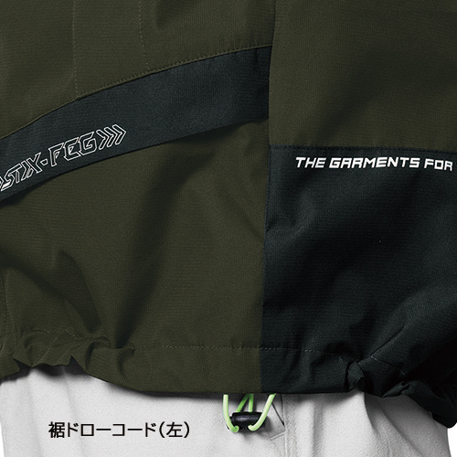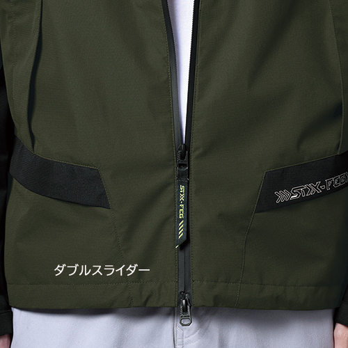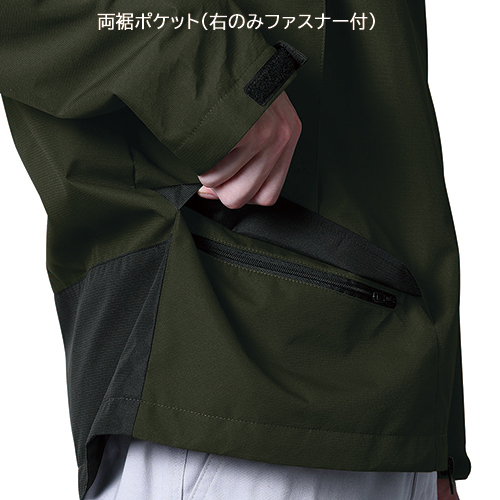 高機能レインウェア並の耐水圧10,000mm、透湿度10,000g/㎡・24hのハードシェルを使用し、耐久撥水・防汚加工を加え、1枚でも軽防寒等のアウターでもタフに使えるハイスペックアイテム。