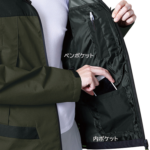 ●左胸止水ファスナー付ポケット