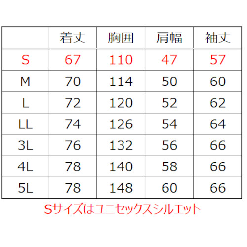Sサイズはユニセックスシルエットになります。