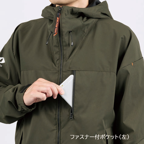 かさ高起毛メッシュの裏地使用で保温性を生む空気層を作り出し、耐久撥水・防風加工した軽量ストレッチシェルと融合させ洗練されたシルエットとデザインに落した新コンセプト超軽防寒