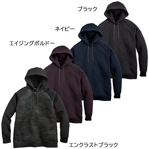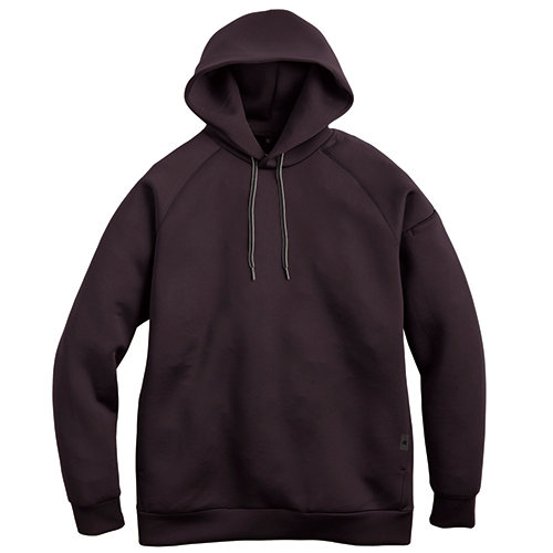 暖かさを感じさせるボリューム感、気持ちいい弾力性といったダンボールニットの優れた特徴を活かし、シンプルなデザインとしつつもトレンド感ある少しオーバーサイズなシルエットにまとめた軽量パーカー