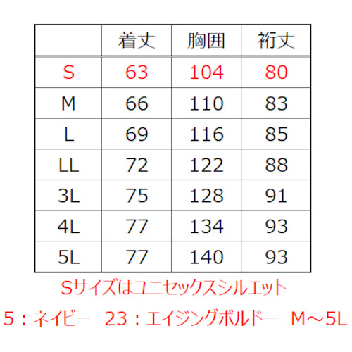 | カラー | サイズ | 数量 (着) |