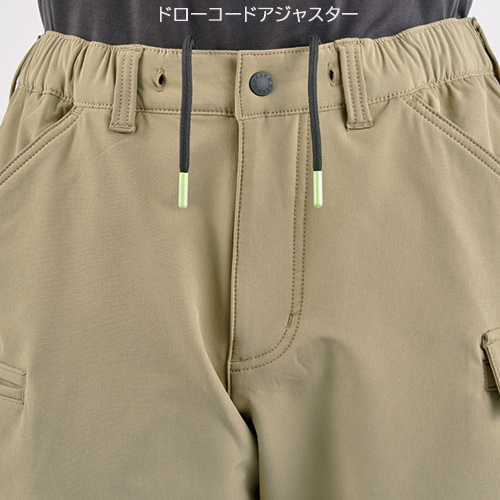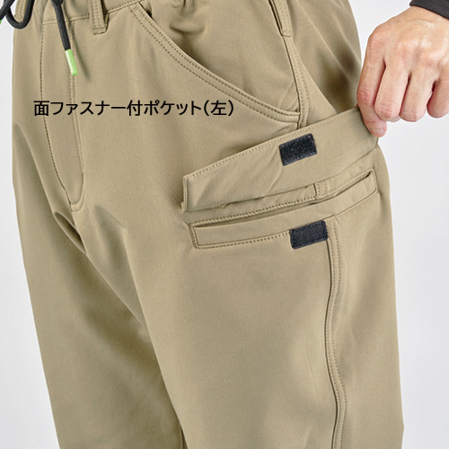 縦メインで優れた伸縮性を発揮しつつ、暖かさを実感できる気持ちいい裏フリースの機能性をベースにワークでもカジュアルでも使いやすいシンプルなデザインでまとめた4WAYストレッチ暖パン